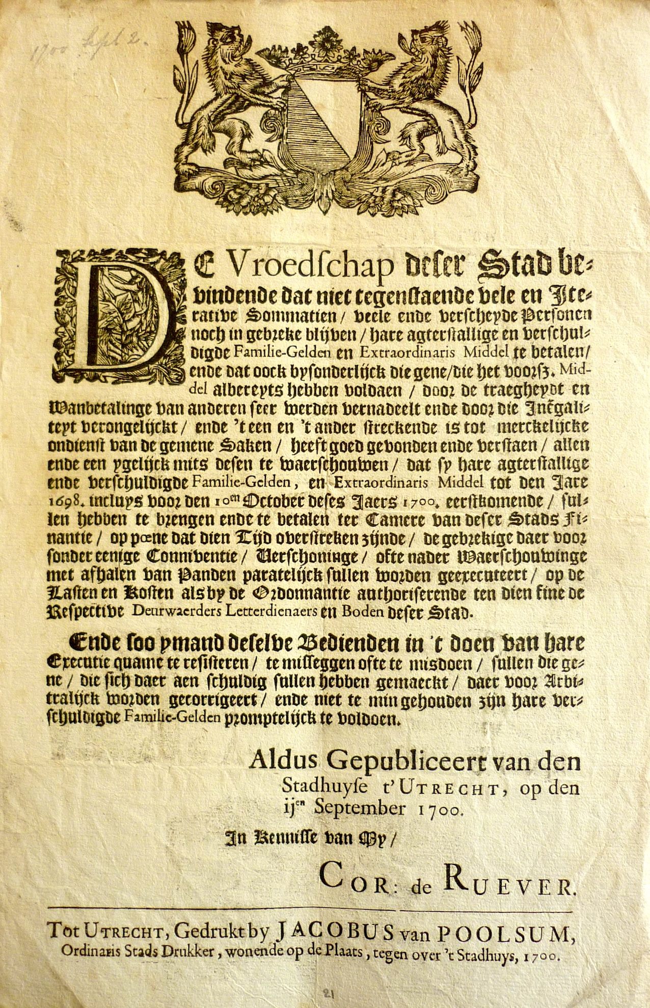 Utrecht (stad), waarschuwing om achterstallig familiegeld en extra-ordinaris middel